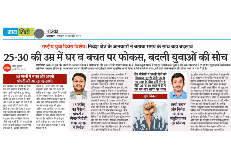Honoured to be featured in Patrika newspaper’s National Youth Day special. It was a privilege to share my financial journey and discuss how our generation is redefining financial stability — shifting the focus from just earning a paycheck to smart investing and securing our future in our 20s.